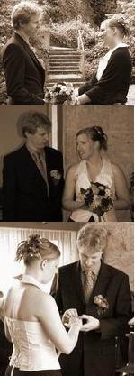 Die Trauung: Das Trauzimmer hat zwei Vorzimmer, so dass sich die Brautpaare bei mehreren Trauungen nicht über den Weg laufen. Und damit alle wissen, zu welchem Zimmer sie gehören, gibt es einen netten Ausdruck mit den Namen des Brautpaares, der vor dem entsprechendem Vorzimmer angebracht ist. Da wirkt das Ganze schon ein bisschen persönlicher. Die Trauung selber war klasse. Ich hatte vorher ein paar Bedenken, da ich von standesamtlichen Trauungen noch nicht soviel Gutes gehört habe. Aber es hat uns wirklich supergut gefallen. Trotz zitternder Finger (Christian konnte gar nicht hinschauen) war das Querflötenduett von Kathrin und Luci einfach toll und eine gute Einstimmung auf das Ganze. Auch die Ansprache des Standesbeamten war sehr passend und hat allen gut gefallen (allerdings könnte ich ohne das Video, dass wir von der Trauung haben, nicht mehr sagen, was genau er gesagt hat...). Das Ja-Wort von Christian war laut und klar, meins dafür umso leiser (als Christian gefragt wurde, machte sich dann doch der Kloß im Hals bemerkbar). Nach dem Ringetausch sangen Katja und Anja für uns "The Rose". Es war sooo schön. Kein Wunder, dass die Unterschrift danach ein wenig zittrig war trotz eines beruhigenden Standesbeamten. |